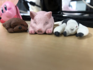 お昼ご飯を買いに行く途中にガチャガチャのお店があるので、たまに回して事務所の机にも飾っています♪