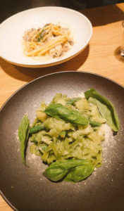 私が食べたのは写真の奥のパスタなのですが、きのこがたっぷりのクリームパスタで