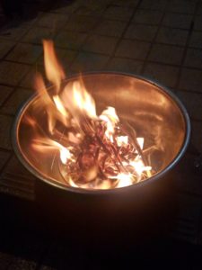 本当は焙烙のお皿でやるのですが、引っ越しの際に行方不明になってしまったので金盥で代用中。