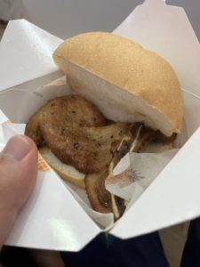 揚げた豚肉が挟まってます。