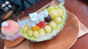 メロンボールと、まるごと桃のケーキです🍈🍑🥺💕